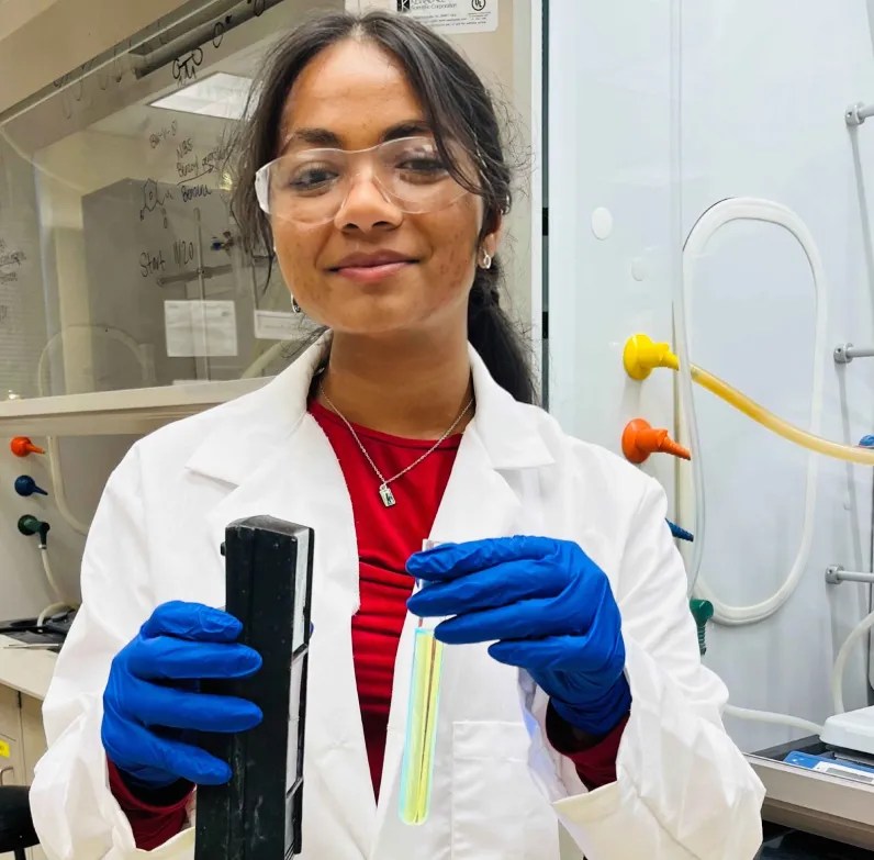 Cafarina joined our research lab as a master’s student in Fall 2025. She earned a B.Sc. in Chemistry, with a minor in Pharmaceutical Chemistry, from the University of Buea in Cameroon. Supported by the NSF-LEAPS-MPS program, she is developing visible-light-absorbing photocages to enable the synthesis of challenging organic and biologically active molecules. After completing her master’s degree, she plans to pursue a career in the pharmaceutical industry or in quality control.